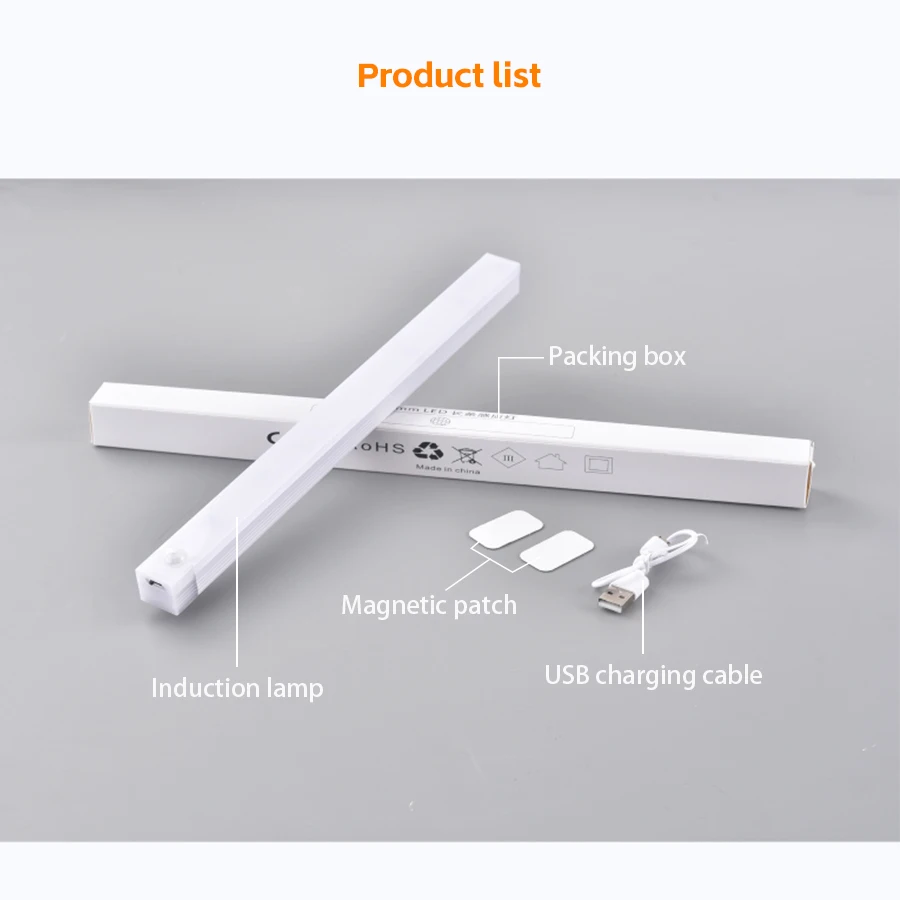 Rechargeable LED Motion Sensor Night Light Under Cabinet Cordless Lamp for Kitchen Wardrobe Bedside Induction Strip Bar Light